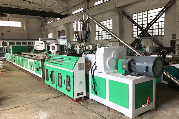 日期:2021-10-20印度客戶訂購我公司PVC木塑實心門套生產(chǎn)線公司驗收合格,設(shè)備組成有:SJSZ-65/132錐形雙螺桿擠出機(jī),真空定型平臺,牽引切割一體機(jī),翻轉(zhuǎn)臺。輔助設(shè)備有:SHR-Z300/600或SHR-Z500/1000冷熱混合機(jī)組。